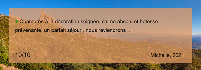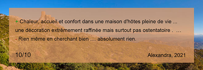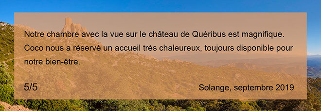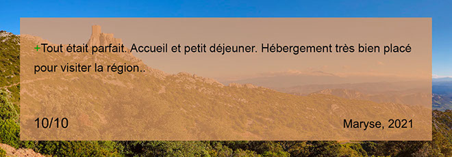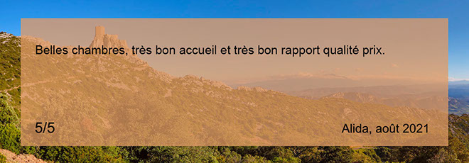 numéro 4. Passage de la Vierge, 11350 Cucugnan. Tél. : +33 (0) 609646047